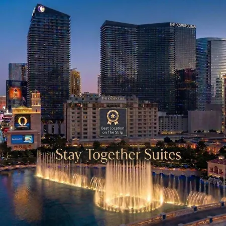 The spacious Stay Together Suites - Condominium On The Strip Sleeps 16 - No Resort Fee Las Vegas is located in Las Vegas, a 20-minute walk from the 550 - foot - tall High Roller Ferris Wheel, and boasts a steam room, a Jacuzzi, and a sauna. Staying at this apartment a few steps from The Cosmopolitan of Las Vegas Casino, guests can enjoy a rooftop swimming pool with a poolside bar.